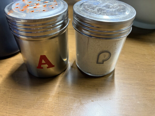 食べ飽きてきたなーと思ったら、卓上のスパイスで味変を。